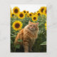 Cute Ginger Cat in Sunflowers Postcard