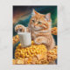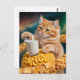 AI generated art of an adorable cat with a glass of milk on a planet made of macaroni