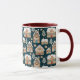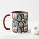 Savor the holiday spirit with the Cute Gingerbread Houses & Cookies Blue Christmas Mug. This delightful mug features charming Nordic Norwegian Scandinavian-inspired festive folk art, bringing the magic of a winter wonderland to your coffee moments. Adorned with gingerbread houses, Christmas cookies, and a whimsical candyland theme, it showcases delicate snowflakes and retro vintage rustic watercolor designs. The rich palette of dark blue, sand brown, and red, accented by festive Christmas pine trees, creates a cozy and sweet holiday vibe—perfect for every sip this season!