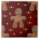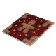A very cute Christmas tile with a pattern of gingerbread men with colorful candy button decorations. All around them are gold stars and baubles, and behind them is a dark red velvet-like pattern. Whether you use this cute tile on the dining table or use it as part of your Christmas decor, this adorable, festive tile will be sure to be a big hit with your visitors, friends and family over the holidays.