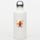 The image presents a festively-decorated gingerbread man, which is the central focus of the frame. The gingerbread man bears a cheerful expression. The body is adorned with white, red, and green embellishments, particularly red and green buttons on the belly. The figure is positioned on a snow-covered layer. The background setting is filled with a display of golden or yellow lights, creating a warm and holiday-like atmosphere. These lights give off a starry or bokeh effect, making the image have a likely blurred aspect. The overall mood of the image is celebratory, possibly related to the winter holiday season.
