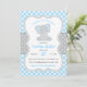 Cute Gingham Blue Gray Elephant Baby Shower Invitation