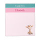 This adorable 5.5" x 6" notepad is perfect for kids who love to make their mark! With 40 pages, it features a super cute giraffe design alongside the phrase "A Note From," ready to be personalized with your child’s name. Whether they’re jotting down reminders, doodling, or writing sweet notes, this custom notepad adds a playful touch to every page. Great for school, home, or gifting! Personalize it to make every message uniquely theirs. Perfectly sized for little hands and big imaginations!