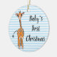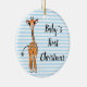 Cute giraffe drawing, safari animals, blue stripes ceramic ornament
