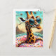 Cute Giraffe Enjoys a Float Trip in Doughnut Postcard
