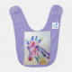 Cute Giraffe First Birthday Watercolor Whimsical Baby Girls Purple Bib. Designed from my original watercolour paintings.