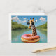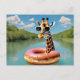 A funny cute giraffe rides on an pink sprinkle donut floatie AI generated art
