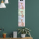 An adorable cartoon giraffe pattern growth chart poster of light pastel colors of pink, blue, green, and purple in the background. Keep or change it, when you customize it. Track your child's growth with this growth chart. Begins at 17 inches and ends at 65 inches. Change the "Name" on the chart. Resize the text or add a different font. Add clip art or little drawings from your child to the chart.