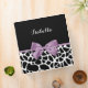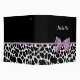 A cute black and white giraffe print 2'' binder with a girly lavender purple ribbon tied into a feminine bow. Personalize this pretty animal print design by adding your name. Flat printed image, not actual bow.
