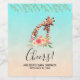 Baby Shower bottle labels with a cute drawing in watercolors of a mom and baby giraffe. The mother giraffe is resting her head on top of the baby giraffe, loving and adorable. Pretty pink, yellow, green watercolor flower bouquet placed underneath this darling pair. Decorative leaves hang down from the top. A gradient background created with a delicate turquoise blue color blending into a sandy brown color.