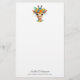 Stationery paper with a whimsical watercolor illustration featuring a giraffe face wearing a pretty spring floral crown. Colorful and cute.