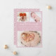 Baby Girl Dusty Pink Birth Announcement 3 Photo Collage Cards. Elegant birth announcement featuring 3 of your favorite baby photos on front, with a pretty hand lettered text „introducing” in a swirly calligraphy script with swash-tails font on light rose or dusty pink color background. Add your baby's name on the front and birth stats. At the back side one vertical baby photo on white dots blush pink background. You can easily personalize it.