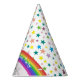 Cute, personalized girl Birthday party hat with rainbow colorful stars and kawaii cat unicorn.