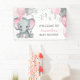 Let your guest know they've arrived with this adorable baby shower banner featuring pink and gray baby girl elephant with balloons and confetti. Easily customized for your event by clicking personalize.