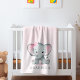 This adorable baby blanket features pink and gray baby girl elephant on a pink ombre watercolor background. Personalize with your baby's name. Easily customized by clicking "personalize".