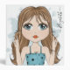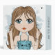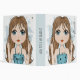 A super cute girl making peace sign symbol gestures with her fingers. Lovely blue eyed long haired brunette cartoon graphic with a watercolor background blue clouds splash. Part of my Beautiful Big eyes whimsical art drawing series. Great to spread hope, harmony, girl power, freedom, friendship, friendly greeting, acceptance, calmness, shalom, etc. Ready to be personalized with your name and your title or subject on the spine. Illustration hand-drawn by Donna Leger.