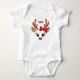 This is an adorable reindeer baby bodysuit featuring the face of a girl reindeer wearing a red bow. This will make a wonderful personalized Christmas gift for a baby girl with the name which can be customized.