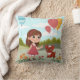 Cute Girl with Dog & Balloons Throw Pillow