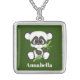 Cute girls panda bear add name silver plated necklace