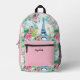 Cute Girls Pink Eiffel Tower Floral School Printed Backpack