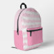 Cute, personalized backpack featuring watercolor pink and white stripes and dots. Add a monogram, name or other custom text wherever you like in EDIT. ASSISTANCE: For help with design modification or personalization, color change, resizing, transferring the design to another product or if you would like coordinating items, contact the designer BEFORE ORDERING via the Zazzle Chat MESSAGE tab below or email makeitaboutyoustore@gmail.com.