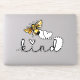 Honey bee "be kind" sticker with text written in a cute cursive script font with hearts.