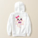 Imagine a charming little ghost, complete with a sweet pink bow and sparkling purple eyes, gently saying "Boo!" in a playful, friendly manner. It’s hard not to smile at such an endearing spirit!