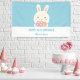 Cute Girly Cartoon Rabbit & Flowers Kids Birthday Banner