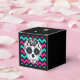 Day of the dead sugar skull girly style on a hot pink, turquoise, and black on a custom party favor box. Makes a cute little gift box.