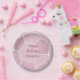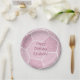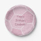 These fun soccer birthday party paper plates feature the image of a soccer ball that has a subtle artsy kaleidoscopic pattern blended with dusty pink -- customize the text in any custom color - by katz_d_zynes