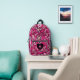 The printed design of this backpack is truly a feast for the eyes. It features an all-over pink floral pattern that exudes a sense of freshness and elegance. The flowers and the hearts, in varying shades of pink, are intricately detailed, giving the design depth and richness. The floral pattern is set against a light pink background, which enhances the vibrancy of the darker pink hues. This design transforms the backpack from a simple accessory into a stylish statement piece.