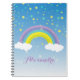 Cute Girly Illustrated Colorful Rainbow and Stars Notebook