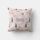 Cute Girly Kitty Cat Pattern Monogram Name Kids Throw Pillow