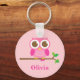 Cute Girly Pink Owl on Branch For Girls Keychain