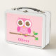 Cute Girly Pink Owl on Branch Girls Personalized Metal Lunch Box
