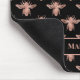 Cute Girly Pink Rose Gold Bees Black Monogram Mouse Pad