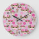 Cute Girly Pink Sock Monkey Girl Pattern Collage Large Clock
