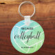 This cute volleyball keychain for girls features a simple volleyball graphic with turquoise to green gradient watercolor wash filter applied to the volleyball's panels - text reads, "because volleyball" in mixed typography with customizable volleyball player's name - by katz_d_zynes