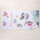 This enchanting custom beach towel features an Under the Sea magical mermaid theme with glitter accents. Two cute mermaids are swimming in the sea, above colorful coral and seashells. A little pink and teal colored seahorse is swimming above the mermaids. Gold and colorful glitter accents decorate the illustration. A sample name is printed at the top in a whimsical pink script font which you can personalize to include your own name or custom text.