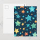 Cute glowing stars on blue postcard