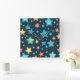 Cute glowing stars on blue square wall clock
