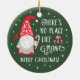 A cute gnome with mushroom, and the saying,"There's no place like gnome" decorates this festive Christmas ornament. So fun for your Christmas tree. Designed for you by Blackberry Boulevard.