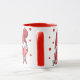 This is an adorable mug to gift someone for valentine's day. This design features a cute gnome woman and man holding a heart in their hands with a dot and heart pattern and the word love on the front of the mug.