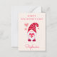 Cute classroom Valentine's Day card featuring an illustration of a cute gnome holding a heart. Personalize the front of the Valentine's Day card by adding a custom greeting and your name. The card reverses to display a pink heart pattern.