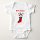 This bodysuit for your baby has a cute little gnome between two candy canes in the top of a red and white Christmas stocking with the text Merry Christmas in red.