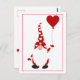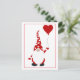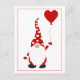 Cute cartoon illustration of a Nordic St Valentine's day gnome in red holding a heart shaped balloon.