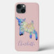 Cute jumping baby goat in lotus pink purple, teal, aqua and yellow brush strokes. A cute animal phone case design is easy to Personalize, just add your name or a family member or friend's name by to create a unique phone case you won't find on the high street. You can be sure your friends will enjoy this colorful and fun jumping baby goat because lets face it, goats just make us smile. Colorful jazzy goat artwork by artist Catherine Sweetman.