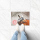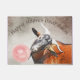 On a champagne colored watercolor background, this fresco style painting of a cute goat blowing a bubblegum bubble says "Happy Hooves Goat Farm" (You can change the Welcome text) Goat Lovers Welcome Mat - great for goat shows too