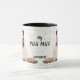 This cute mug features a little pug dog looking adorable on each side. Between the images is black text that says "My PUG MUG", with your name or monogram at the bottom. Everything is placed on a white background sprinkled with gold confetti bits. The text is in a customizable field, so that you may change it if you'd like.