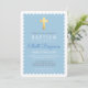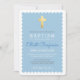 CUTE GOLD CROSS modern baptism scalloped edge blue Invitation